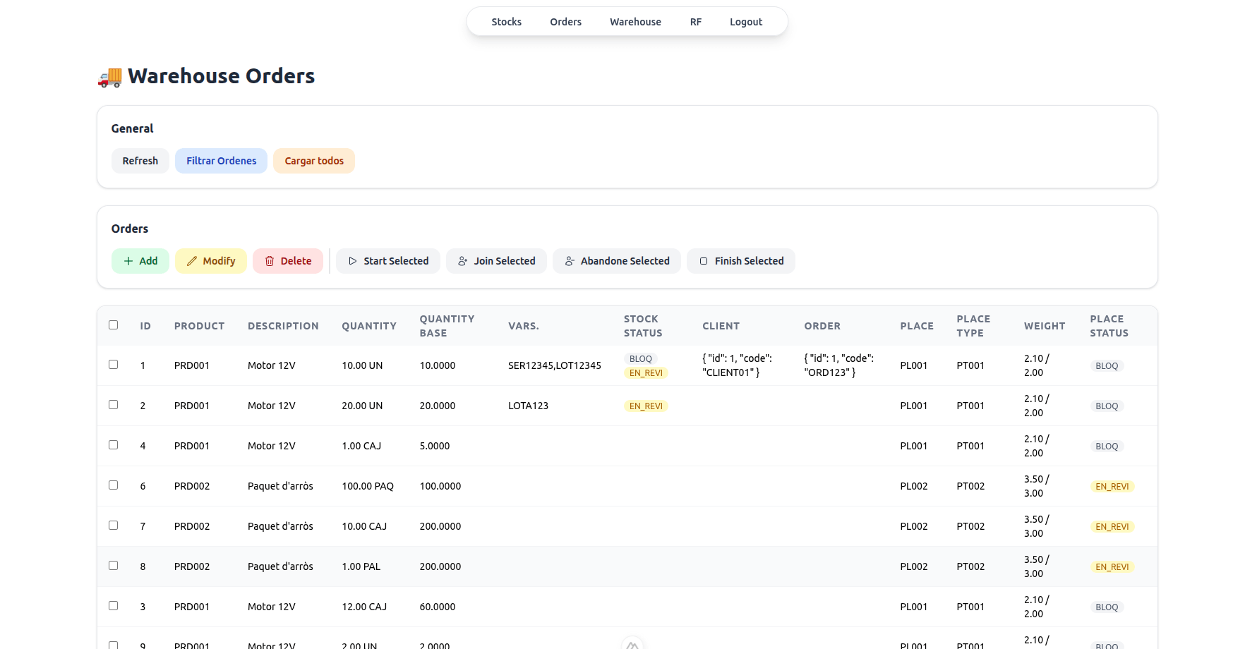 Procesa pedidos, controla stock y realiza movimientos con flujos optimizados.